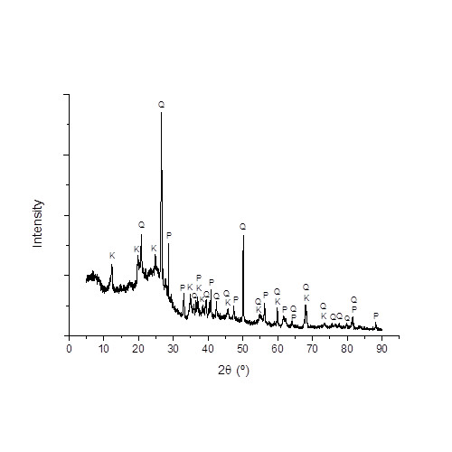 Figure 2.XRD Patterns of feed coal sample (Q = Quartz, P = Pyrite and K = Kaolinite)