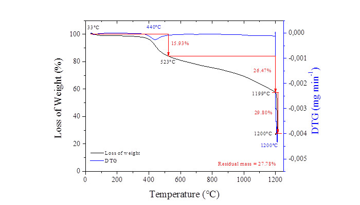 Sample mass variation as a function of temperature was evaluated by Thermo Gravimetric Analysis (TGA) using the TGA thermogravimetric analyzer SDTA 851 - Mettler Toledo. For the feed coal, a mass of 9.3 mg of the previously dried sample was heated using a rate of 10 ° C min-1 in an inert nitrogen atmosphere with a flow of 50 mL min -1, and followed by an isotherm at 1200 ° C in an oxygen atmosphere during 15 min (Fallavena et al., 2013). For the ashes, 7 mg of each sample was previously dried and analyzed under a dynamic nitrogen atmosphere with a flow of 50 mL min-1 and heated until reach 1200 ° C using a rate of 10 ° C min-1.