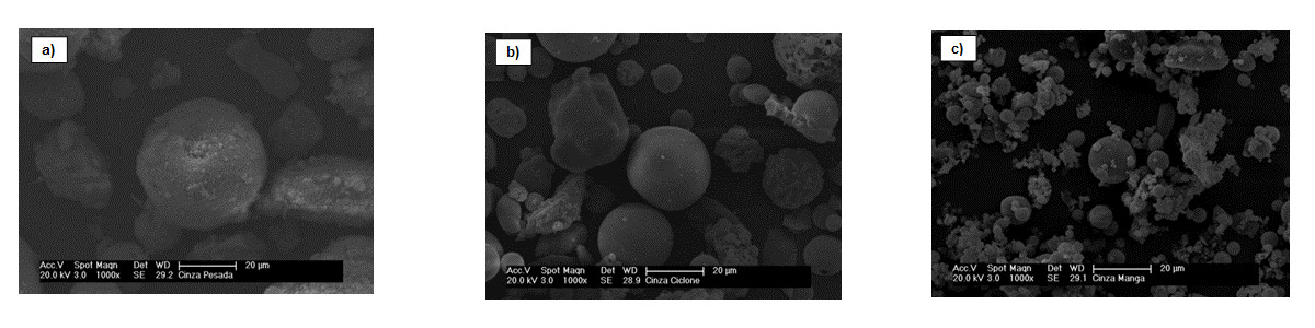 The morphology of feed coal and CCBs was verified by a scanning electron microscope (Philips - XL30). Samples were covered with a thin layer of gold to make them conductive prior to observations in the microscope.