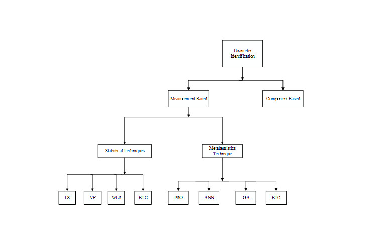 This approach makes use of historical measurement data obtainable from different measurement devices usually installed at load bus substations. Devices such as Smart Meters (SM), Digital Fault Recorder (DFR), Power Quality Monitors (PQM) and Phasor Measurement Unit (PMU) are now used to capture network data in real time at both low and medium voltage levels [13]. The advantages of this method are that; the model is developing based on actual real time scenario, and there is no need of having deep knowledge of individual loads. Basically there are two techniques reported for parameter identification in measurement based: the statistical and the metaheuristics methods as seen in Figure 4 [10,11]. The statistical method is actually an analytical approach which is characterized with computational error. Although it is more preferred when compared with component based in terms of both accuracy and simplicity. These techniques include; Least Square (LS) method, Vector Fitting (VF) technique, Weighted LS (WLS), Kaman’s filter among others. The evolutions of metaheuristics techniques opens another window for load modeling techniques as they perform better in terms of both accuracy and reduction of computational time [12].