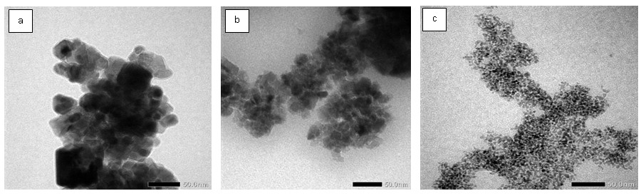 Figure 5.TEM image of nanoparticles synthesized at temperature of 210 ° C at 3.5 h (a), 7 h (b), and 12 h (c) with magnification of 80,000X