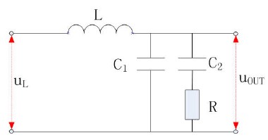 \begin{equation} G\left ( s \right )=\frac{u_{OUT\left ( s \right )}}{u_{L}\left ( s \right )}=\frac{sRC_{2}+1}{S^{3}RC_{1}C_{2}L+S^{2}\left ( C_{1}+C_{2}L \right )+SRC_{2}+1} \tag{17} \end{equation}