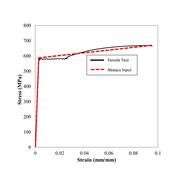 Figure 4.Figure 4. Stress-strain model of steel reinforcement prepared for ABAQUS model